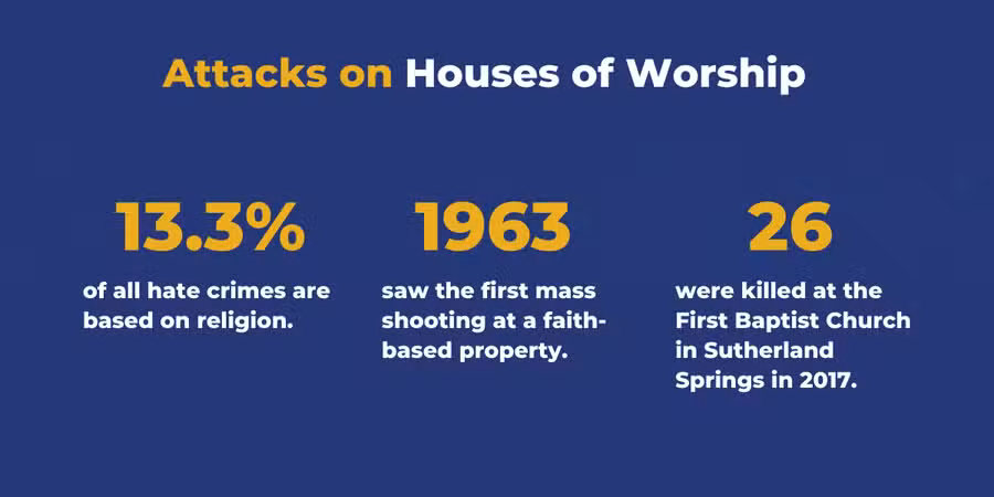 Church shootings are becoming an increasing threat to the religious communities of America. The United States Justice Department has determined that 13.3% of all hate crimes are based on religion—a striking statistic considering how unprotected many churches are to the threats of an active shooter.